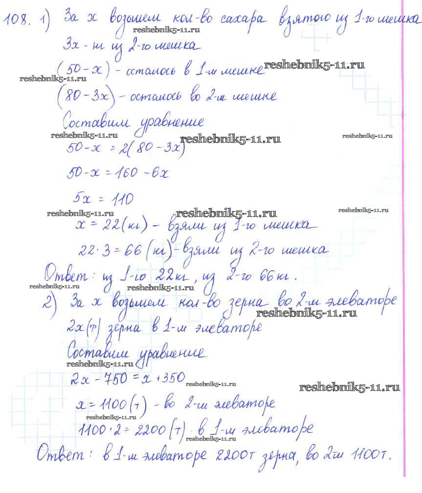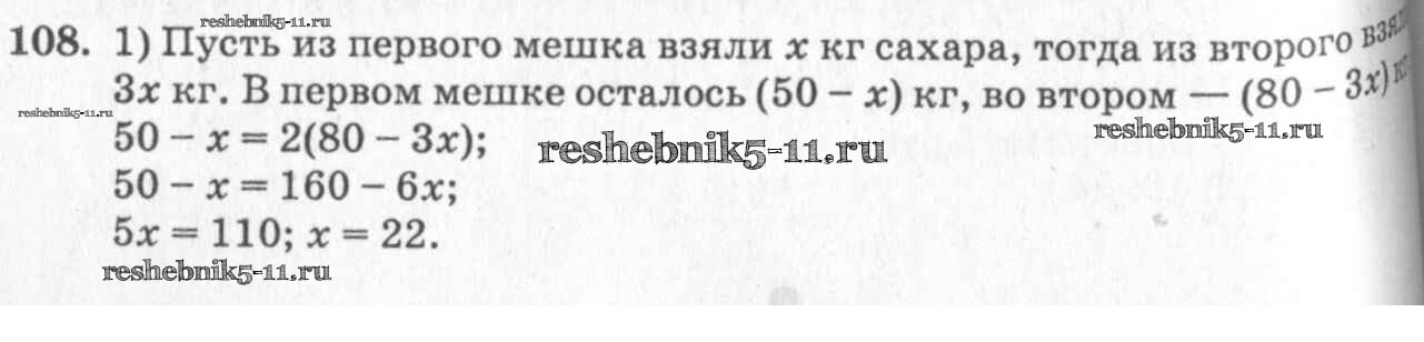 Готовая домашняя работа с ответами по Алгебре за 7 класс Колягин, Ткачёва, Федорова, Шабунин Учебник Просвещение 2014 ФГОС - §8. Решение задач с помощью уравнений 108