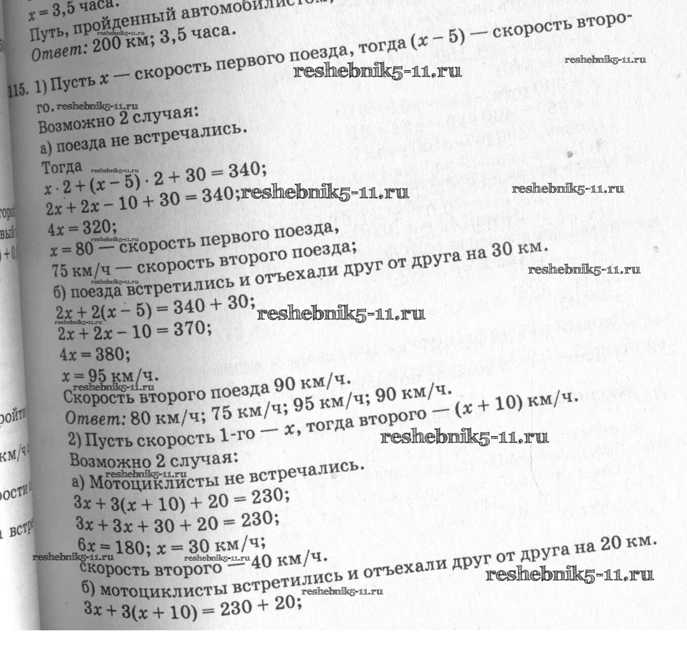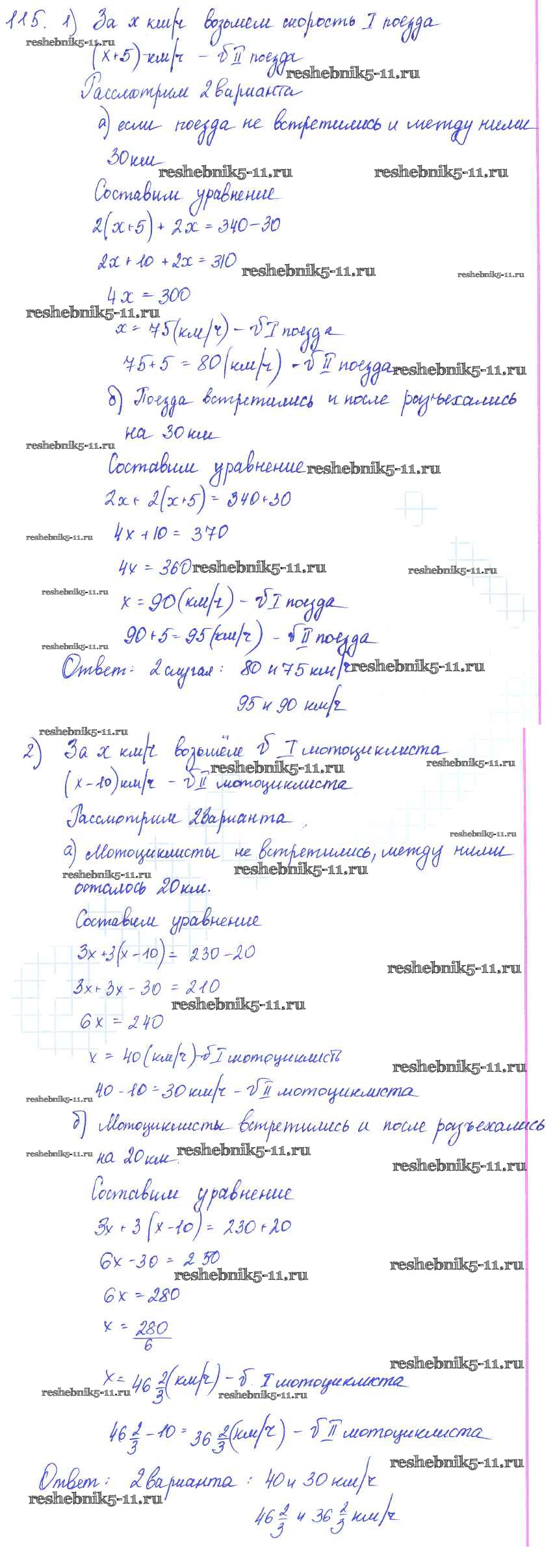 Готовая домашняя работа с ответами по Алгебре за 7 класс Колягин, Ткачёва, Федорова, Шабунин Учебник Просвещение 2014 ФГОС - §8. Решение задач с помощью уравнений 115