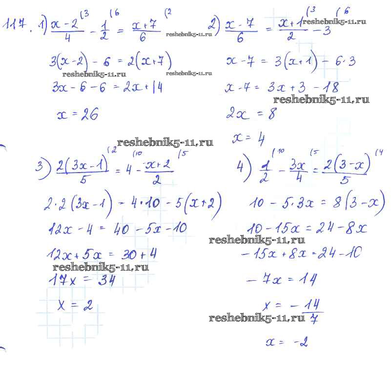 Готовая домашняя работа с ответами по Алгебре за 7 класс Колягин, Ткачёва, Федорова, Шабунин Учебник Просвещение 2014 ФГОС - Упражнения к главе 2 117