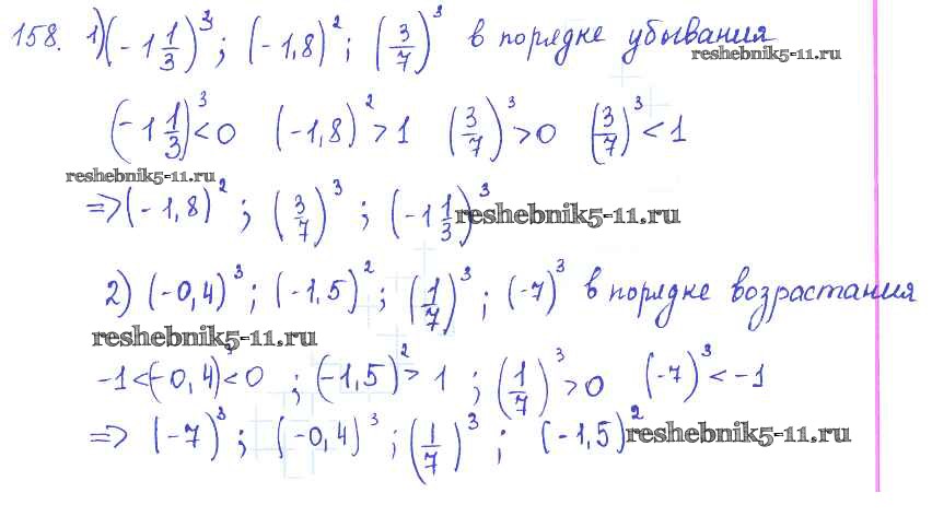Готовая домашняя работа с ответами по Алгебре за 7 класс Колягин, Ткачёва, Федорова, Шабунин Учебник Просвещение 2014 ФГОС - §9. Степень с натуральным показателем 158