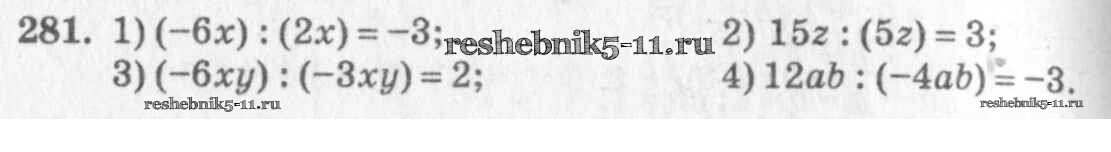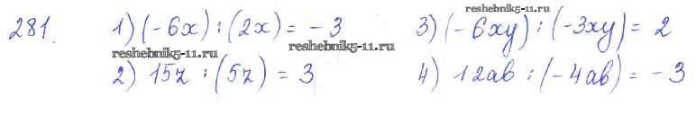 Готовая домашняя работа с ответами по Алгебре за 7 класс Колягин, Ткачёва, Федорова, Шабунин Учебник Просвещение 2014 ФГОС - §18. Деление одночлена и многочлена на одночлен 281