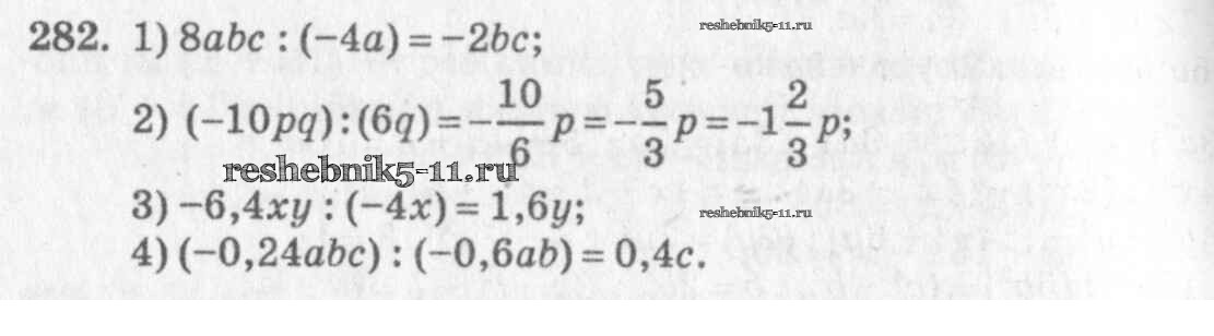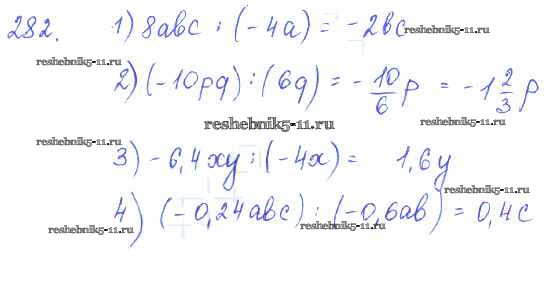 Готовая домашняя работа с ответами по Алгебре за 7 класс Колягин, Ткачёва, Федорова, Шабунин Учебник Просвещение 2014 ФГОС - §18. Деление одночлена и многочлена на одночлен 282