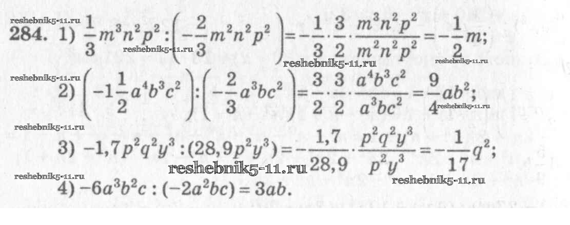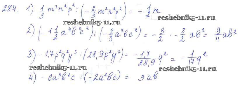 Готовая домашняя работа с ответами по Алгебре за 7 класс Колягин, Ткачёва, Федорова, Шабунин Учебник Просвещение 2014 ФГОС - §18. Деление одночлена и многочлена на одночлен 284