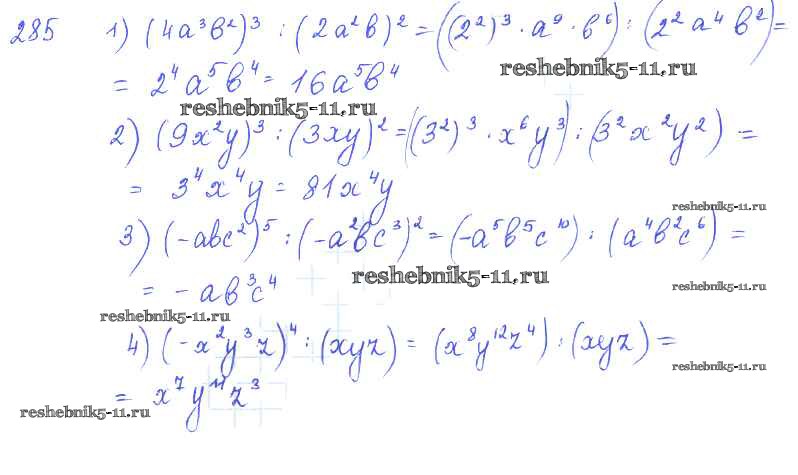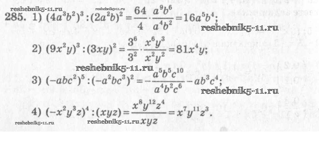 Готовая домашняя работа с ответами по Алгебре за 7 класс Колягин, Ткачёва, Федорова, Шабунин Учебник Просвещение 2014 ФГОС - §18. Деление одночлена и многочлена на одночлен 285