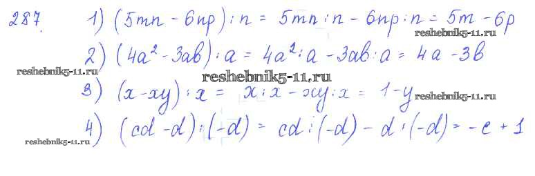 Готовая домашняя работа с ответами по Алгебре за 7 класс Колягин, Ткачёва, Федорова, Шабунин Учебник Просвещение 2014 ФГОС - §18. Деление одночлена и многочлена на одночлен 287