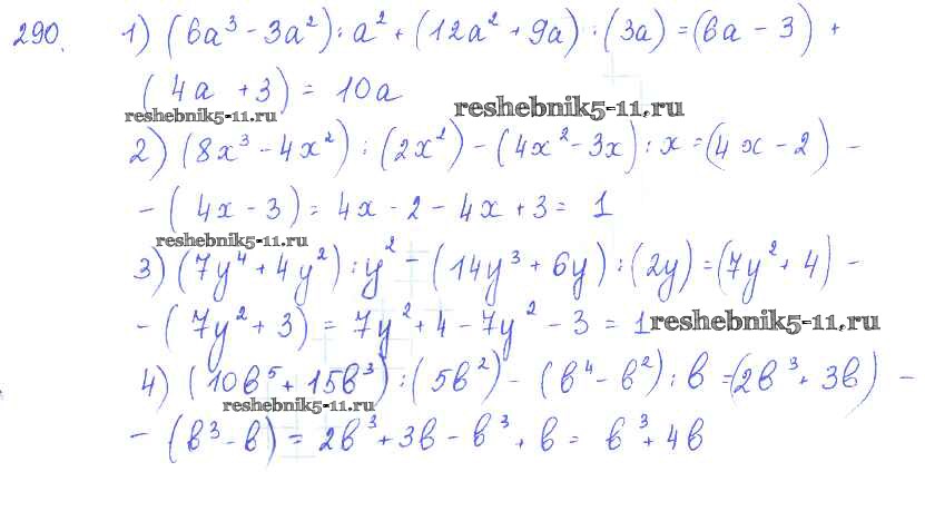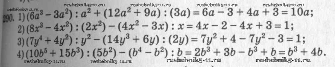 Готовая домашняя работа с ответами по Алгебре за 7 класс Колягин, Ткачёва, Федорова, Шабунин Учебник Просвещение 2014 ФГОС - §18. Деление одночлена и многочлена на одночлен 290