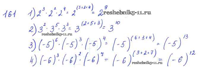 Готовая домашняя работа с ответами по Алгебре за 7 класс Колягин, Ткачёва, Федорова, Шабунин Учебник Просвещение 2014 ФГОС - §10. Свойства степени с натуральным показателем 161