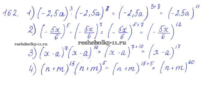 Готовая домашняя работа с ответами по Алгебре за 7 класс Колягин, Ткачёва, Федорова, Шабунин Учебник Просвещение 2014 ФГОС - §10. Свойства степени с натуральным показателем 162