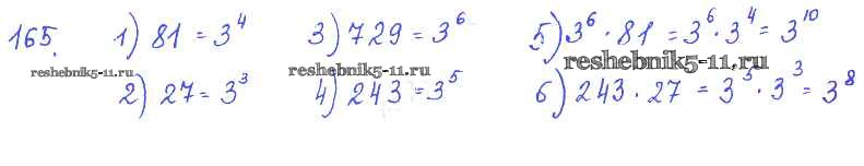 Готовая домашняя работа с ответами по Алгебре за 7 класс Колягин, Ткачёва, Федорова, Шабунин Учебник Просвещение 2014 ФГОС - §10. Свойства степени с натуральным показателем 165