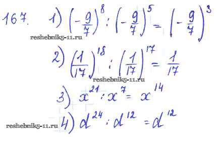 Готовая домашняя работа с ответами по Алгебре за 7 класс Колягин, Ткачёва, Федорова, Шабунин Учебник Просвещение 2014 ФГОС - §10. Свойства степени с натуральным показателем 167