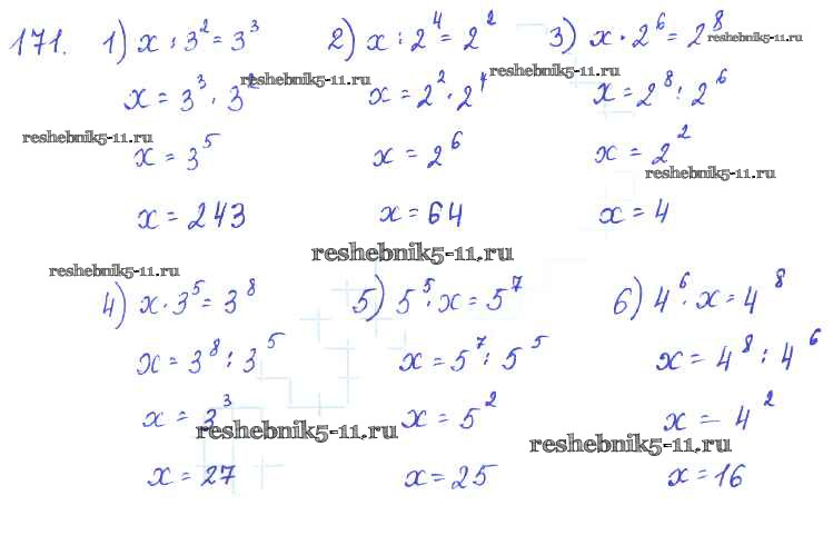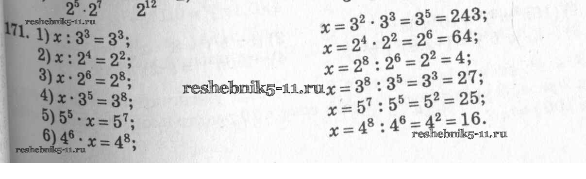 Готовая домашняя работа с ответами по Алгебре за 7 класс Колягин, Ткачёва, Федорова, Шабунин Учебник Просвещение 2014 ФГОС - §10. Свойства степени с натуральным показателем 171