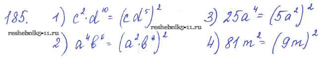 Готовая домашняя работа с ответами по Алгебре за 7 класс Колягин, Ткачёва, Федорова, Шабунин Учебник Просвещение 2014 ФГОС - §10. Свойства степени с натуральным показателем 185