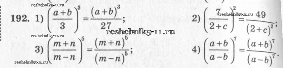Готовая домашняя работа с ответами по Алгебре за 7 класс Колягин, Ткачёва, Федорова, Шабунин Учебник Просвещение 2014 ФГОС - §10. Свойства степени с натуральным показателем 192