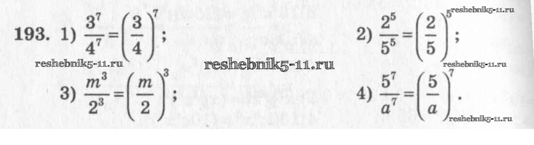 Готовая домашняя работа с ответами по Алгебре за 7 класс Колягин, Ткачёва, Федорова, Шабунин Учебник Просвещение 2014 ФГОС - §10. Свойства степени с натуральным показателем 193