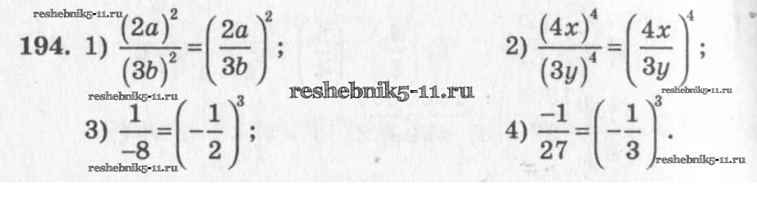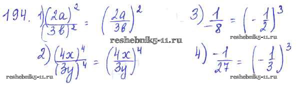 Готовая домашняя работа с ответами по Алгебре за 7 класс Колягин, Ткачёва, Федорова, Шабунин Учебник Просвещение 2014 ФГОС - §10. Свойства степени с натуральным показателем 194