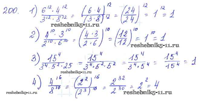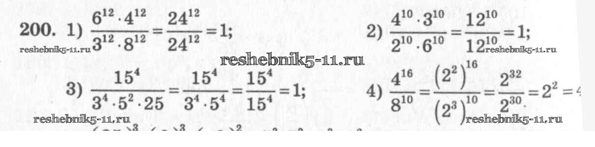 Готовая домашняя работа с ответами по Алгебре за 7 класс Колягин, Ткачёва, Федорова, Шабунин Учебник Просвещение 2014 ФГОС - §10. Свойства степени с натуральным показателем 200