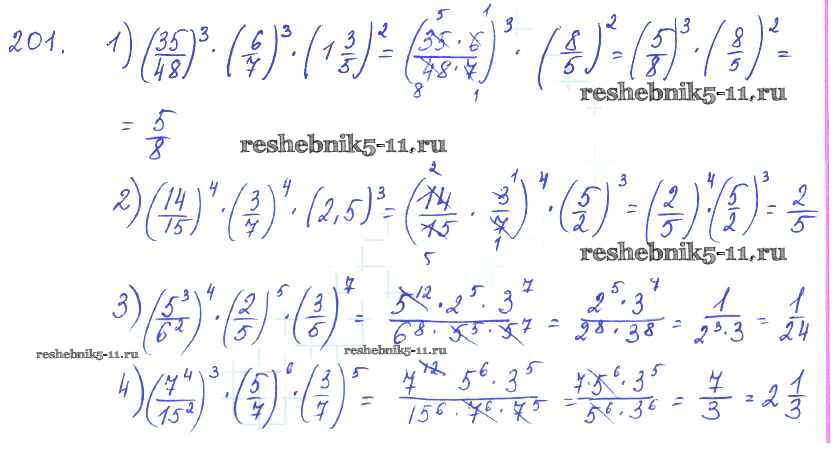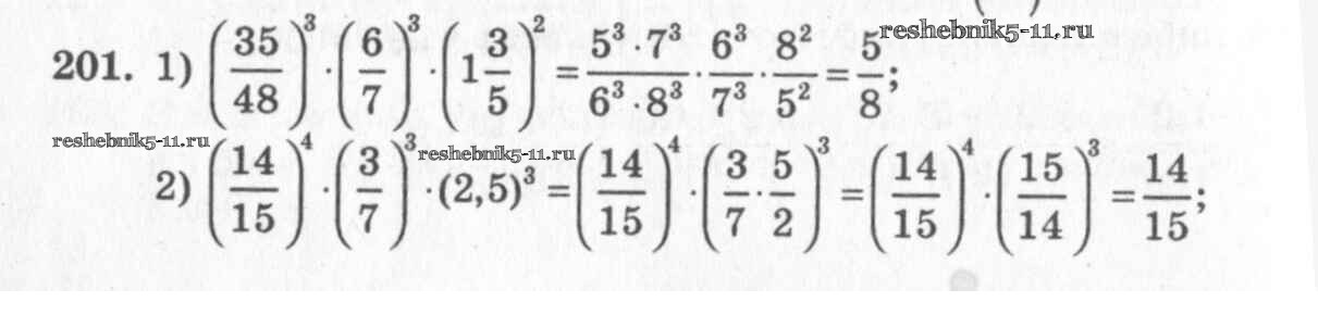 Готовая домашняя работа с ответами по Алгебре за 7 класс Колягин, Ткачёва, Федорова, Шабунин Учебник Просвещение 2014 ФГОС - §10. Свойства степени с натуральным показателем 201