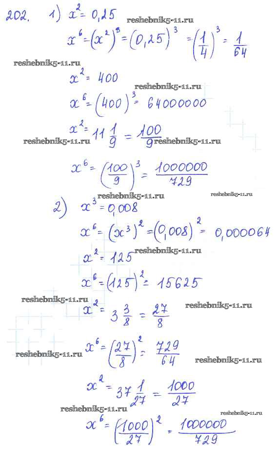Готовая домашняя работа с ответами по Алгебре за 7 класс Колягин, Ткачёва, Федорова, Шабунин Учебник Просвещение 2014 ФГОС - §10. Свойства степени с натуральным показателем 202