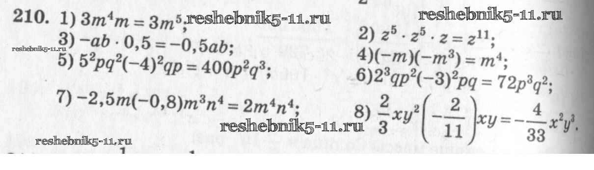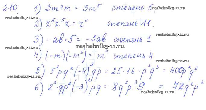 Готовая домашняя работа с ответами по Алгебре за 7 класс Колягин, Ткачёва, Федорова, Шабунин Учебник Просвещение 2014 ФГОС - §11. Одночлен. Стандартный вид одночлена 210