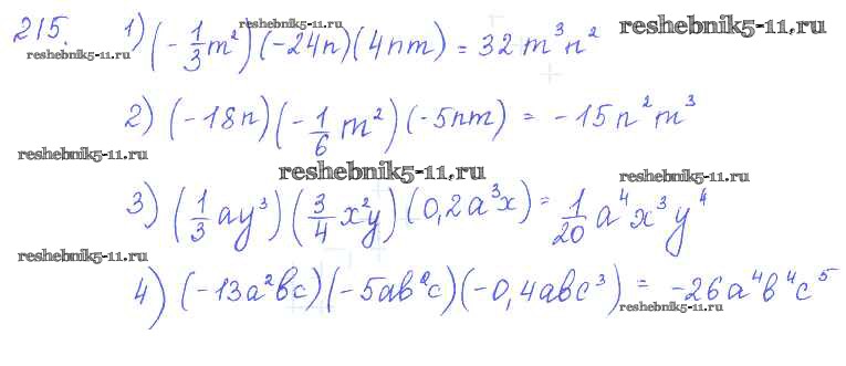 Готовая домашняя работа с ответами по Алгебре за 7 класс Колягин, Ткачёва, Федорова, Шабунин Учебник Просвещение 2014 ФГОС - §12. Умножение одночленов 215