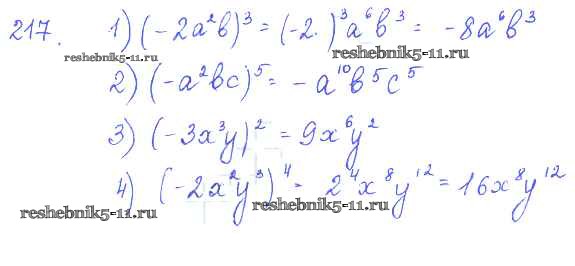 Готовая домашняя работа с ответами по Алгебре за 7 класс Колягин, Ткачёва, Федорова, Шабунин Учебник Просвещение 2014 ФГОС - §12. Умножение одночленов 217