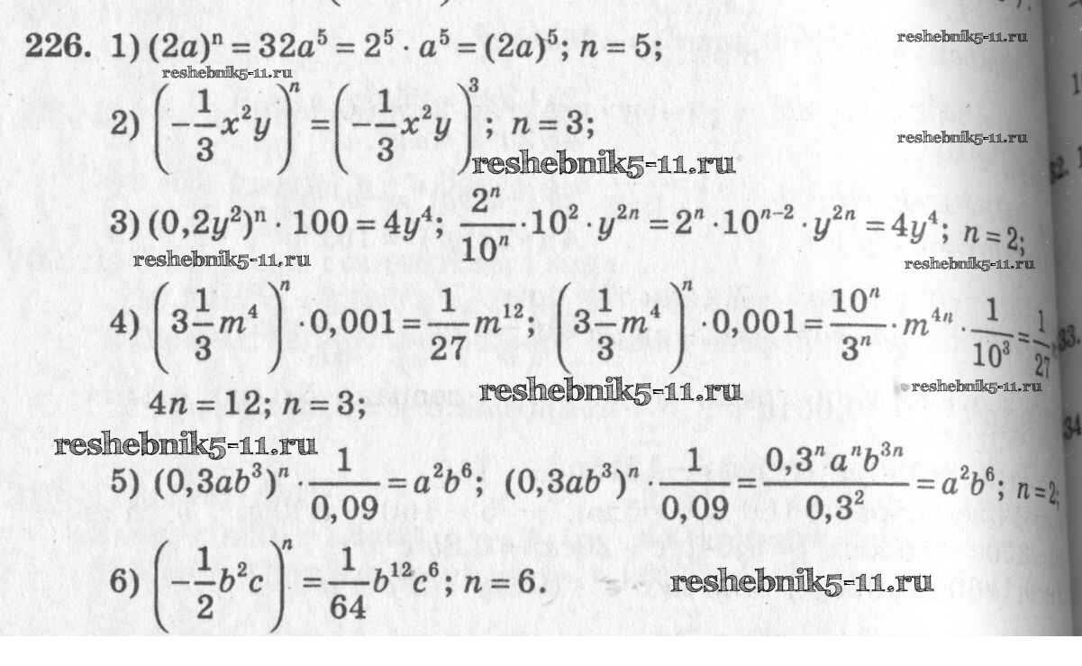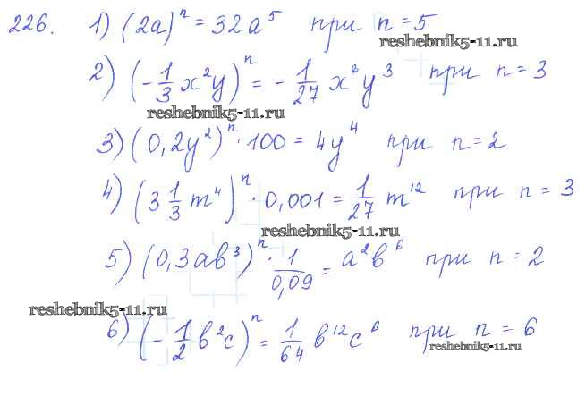 Готовая домашняя работа с ответами по Алгебре за 7 класс Колягин, Ткачёва, Федорова, Шабунин Учебник Просвещение 2014 ФГОС - §12. Умножение одночленов 226