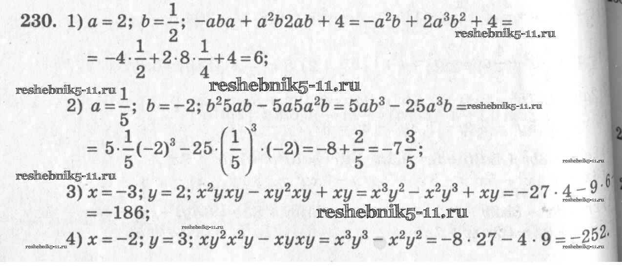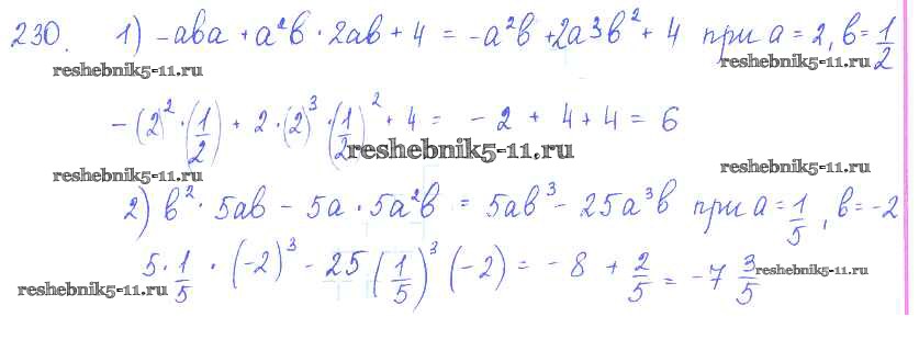Готовая домашняя работа с ответами по Алгебре за 7 класс Колягин, Ткачёва, Федорова, Шабунин Учебник Просвещение 2014 ФГОС - §13. Многочлены 230