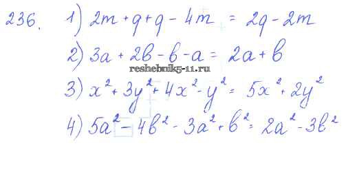 Готовая домашняя работа с ответами по Алгебре за 7 класс Колягин, Ткачёва, Федорова, Шабунин Учебник Просвещение 2014 ФГОС - §14. Приведение подобных членов 236
