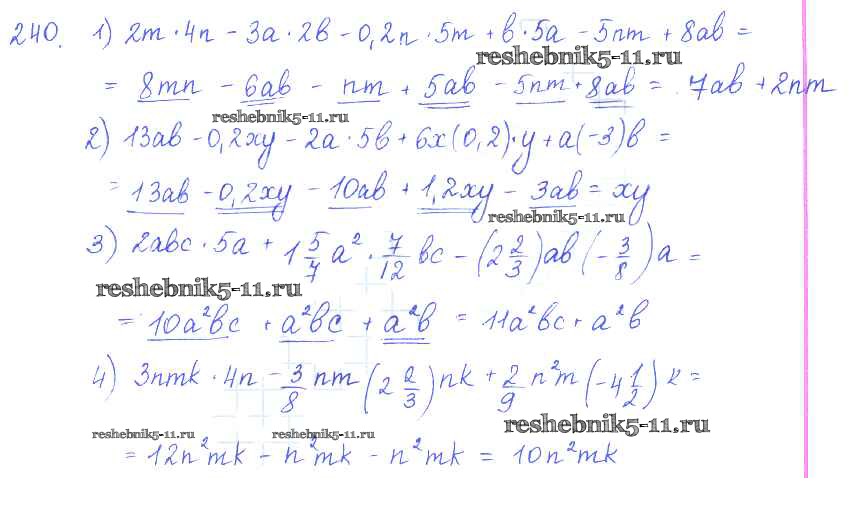 Готовая домашняя работа с ответами по Алгебре за 7 класс Колягин, Ткачёва, Федорова, Шабунин Учебник Просвещение 2014 ФГОС - §14. Приведение подобных членов 240