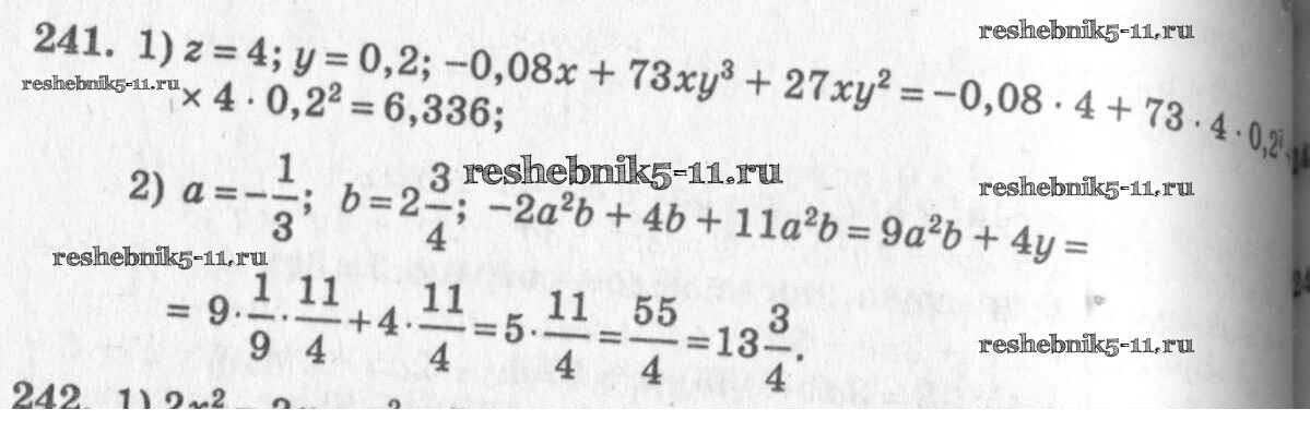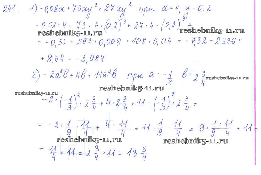 Готовая домашняя работа с ответами по Алгебре за 7 класс Колягин, Ткачёва, Федорова, Шабунин Учебник Просвещение 2014 ФГОС - §14. Приведение подобных членов 241
