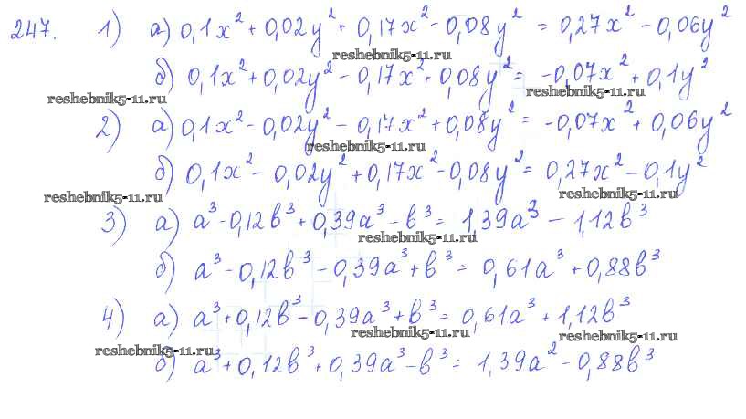 Готовая домашняя работа с ответами по Алгебре за 7 класс Колягин, Ткачёва, Федорова, Шабунин Учебник Просвещение 2014 ФГОС - §15. Сложение и вычитание многочленов 247