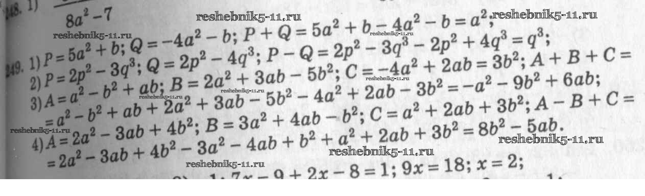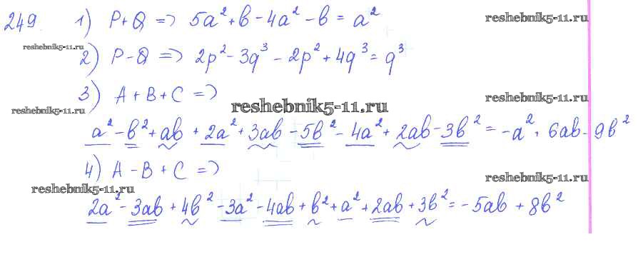 Готовая домашняя работа с ответами по Алгебре за 7 класс Колягин, Ткачёва, Федорова, Шабунин Учебник Просвещение 2014 ФГОС - §15. Сложение и вычитание многочленов 249