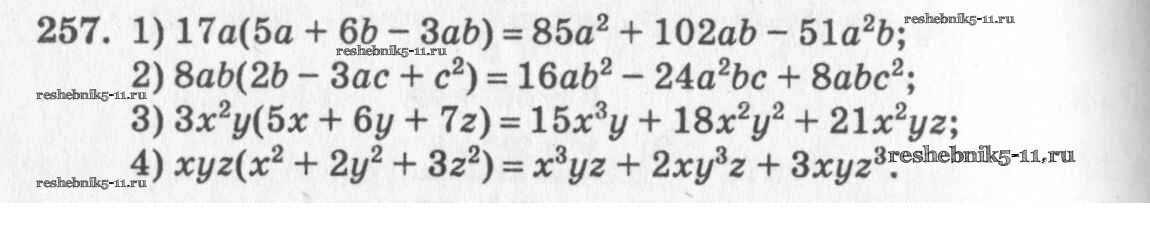 Готовая домашняя работа с ответами по Алгебре за 7 класс Колягин, Ткачёва, Федорова, Шабунин Учебник Просвещение 2014 ФГОС - §16. Умножение многочлена на одночлен 257