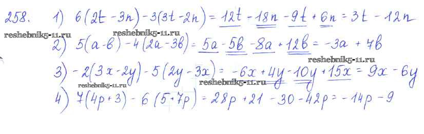 Готовая домашняя работа с ответами по Алгебре за 7 класс Колягин, Ткачёва, Федорова, Шабунин Учебник Просвещение 2014 ФГОС - §16. Умножение многочлена на одночлен 258
