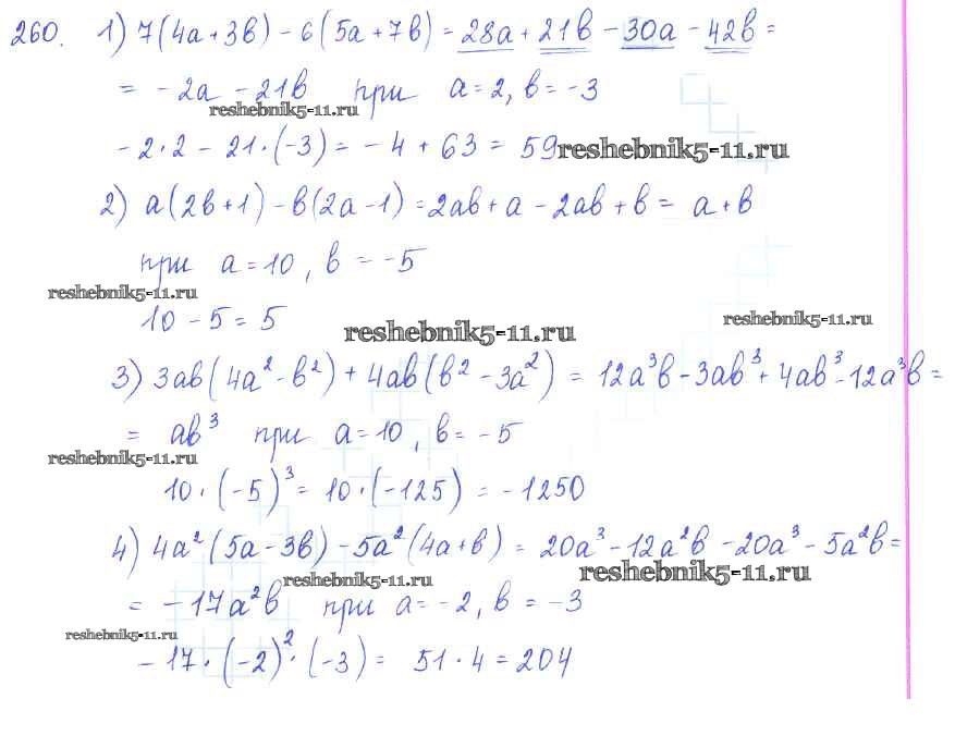 Готовая домашняя работа с ответами по Алгебре за 7 класс Колягин, Ткачёва, Федорова, Шабунин Учебник Просвещение 2014 ФГОС - §16. Умножение многочлена на одночлен 260