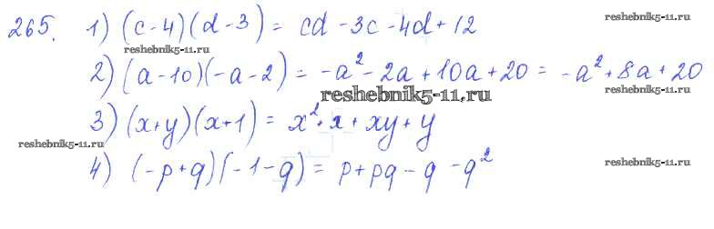 Готовая домашняя работа с ответами по Алгебре за 7 класс Колягин, Ткачёва, Федорова, Шабунин Учебник Просвещение 2014 ФГОС - §17. Умножение многочлена на многочлен 265