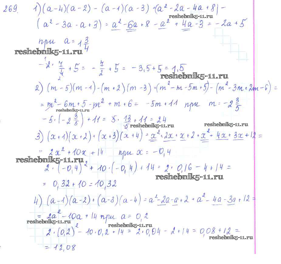 Готовая домашняя работа с ответами по Алгебре за 7 класс Колягин, Ткачёва, Федорова, Шабунин Учебник Просвещение 2014 ФГОС - §17. Умножение многочлена на многочлен 269