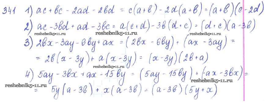 Готовая домашняя работа с ответами по Алгебре за 7 класс Колягин, Ткачёва, Федорова, Шабунин Учебник Просвещение 2014 ФГОС - §20. Способ группировки 341