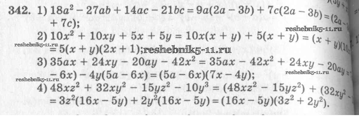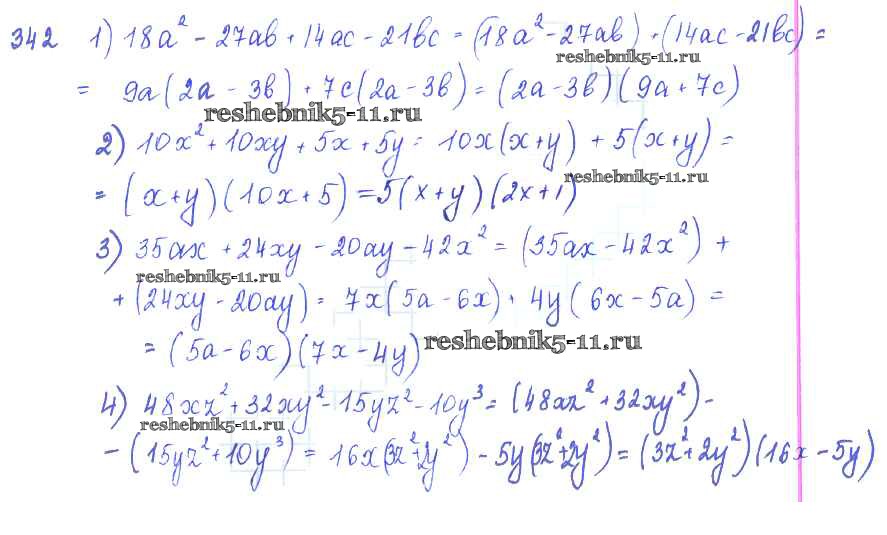 Готовая домашняя работа с ответами по Алгебре за 7 класс Колягин, Ткачёва, Федорова, Шабунин Учебник Просвещение 2014 ФГОС - §20. Способ группировки 342