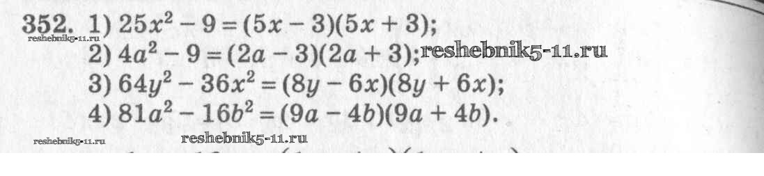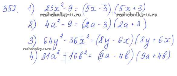 Готовая домашняя работа с ответами по Алгебре за 7 класс Колягин, Ткачёва, Федорова, Шабунин Учебник Просвещение 2014 ФГОС - §21. Формула разности квадратов 352
