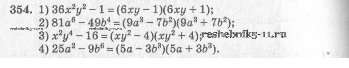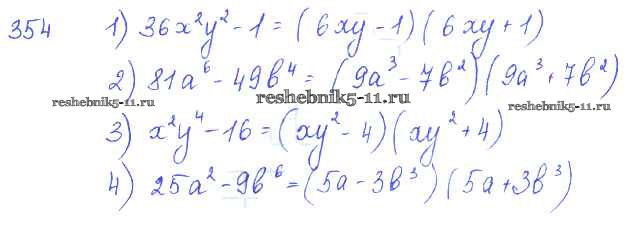 Готовая домашняя работа с ответами по Алгебре за 7 класс Колягин, Ткачёва, Федорова, Шабунин Учебник Просвещение 2014 ФГОС - §21. Формула разности квадратов 354
