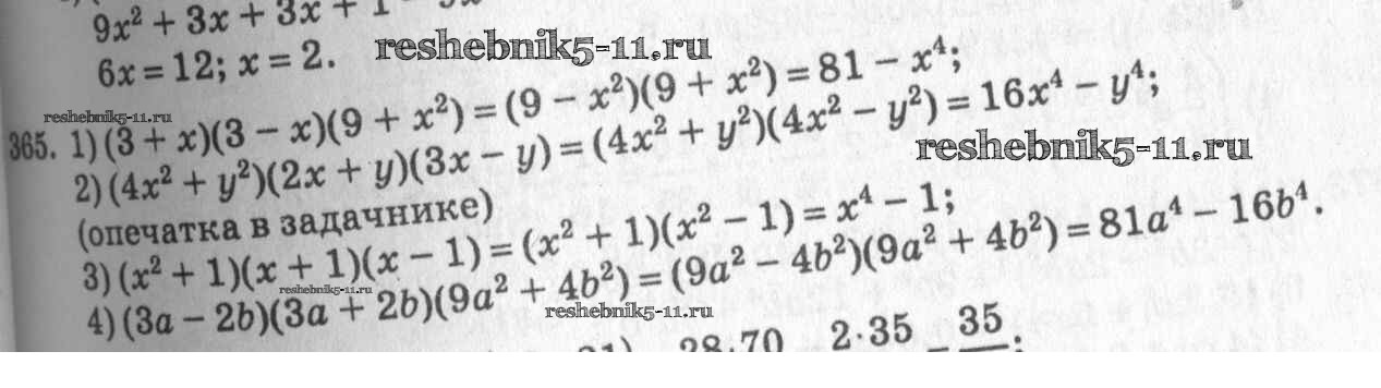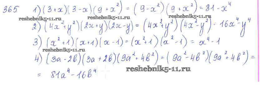 Готовая домашняя работа с ответами по Алгебре за 7 класс Колягин, Ткачёва, Федорова, Шабунин Учебник Просвещение 2014 ФГОС - §21. Формула разности квадратов 365
