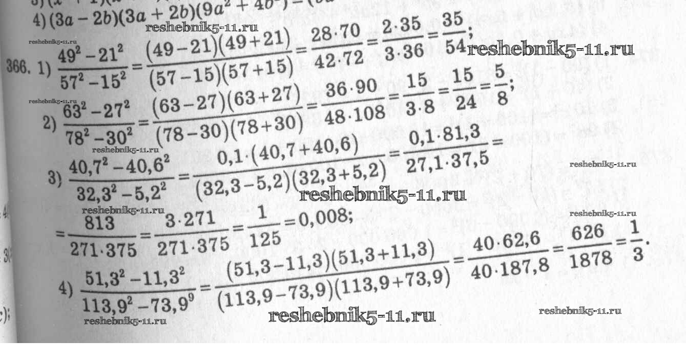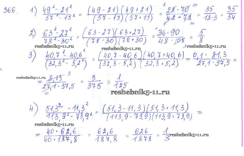 Готовая домашняя работа с ответами по Алгебре за 7 класс Колягин, Ткачёва, Федорова, Шабунин Учебник Просвещение 2014 ФГОС - §21. Формула разности квадратов 366