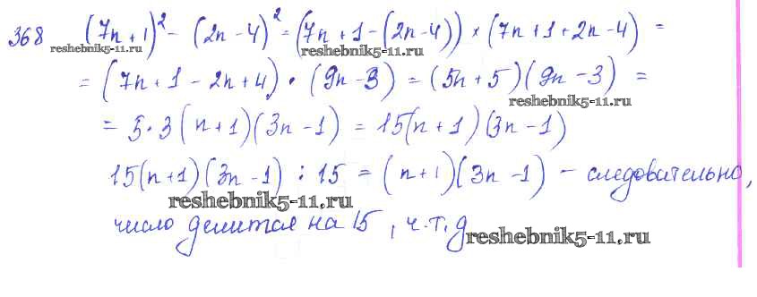 Готовая домашняя работа с ответами по Алгебре за 7 класс Колягин, Ткачёва, Федорова, Шабунин Учебник Просвещение 2014 ФГОС - §21. Формула разности квадратов 368