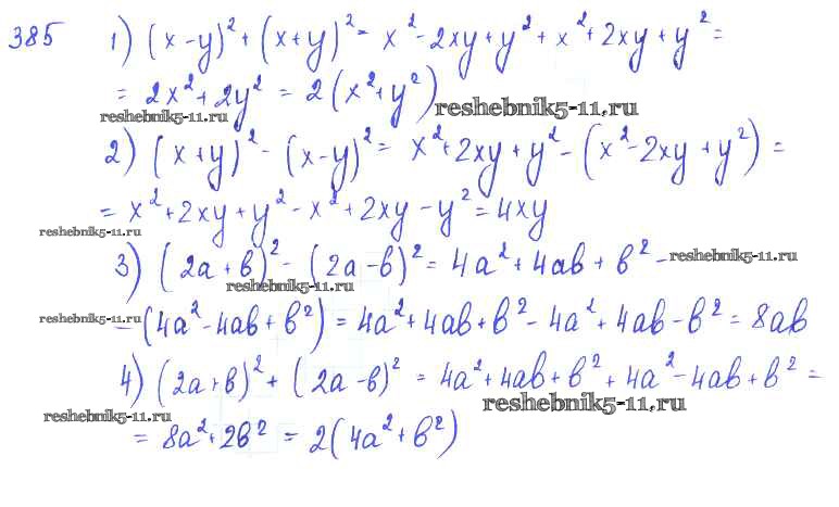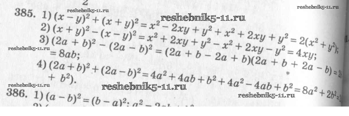 Готовая домашняя работа с ответами по Алгебре за 7 класс Колягин, Ткачёва, Федорова, Шабунин Учебник Просвещение 2014 ФГОС - §22. Квадрат суммы. Квадрат разности 385