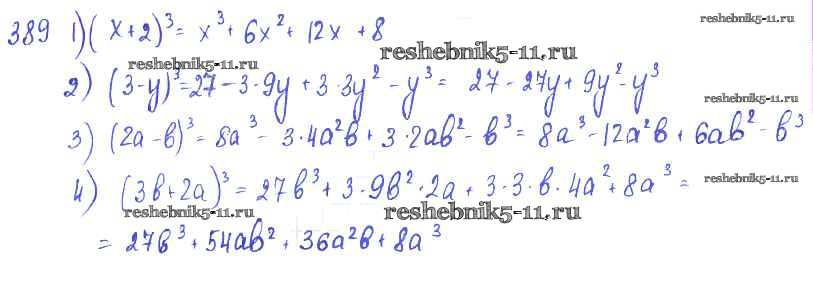 Готовая домашняя работа с ответами по Алгебре за 7 класс Колягин, Ткачёва, Федорова, Шабунин Учебник Просвещение 2014 ФГОС - §22. Квадрат суммы. Квадрат разности 389
