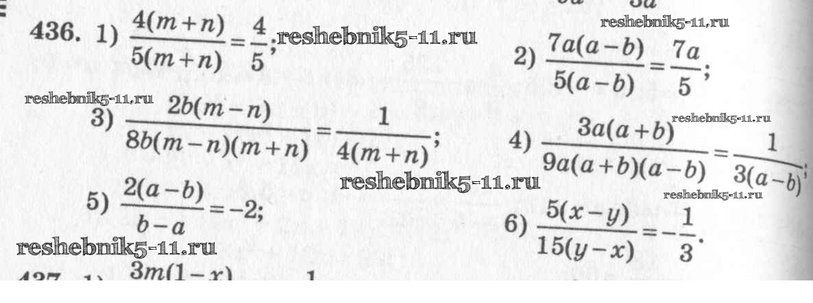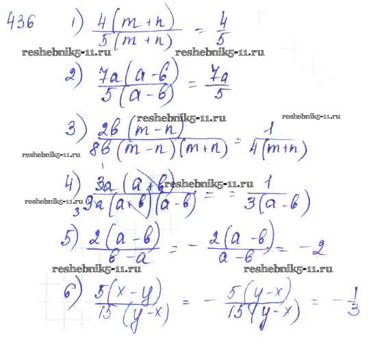 Готовая домашняя работа с ответами по Алгебре за 7 класс Колягин, Ткачёва, Федорова, Шабунин Учебник Просвещение 2014 ФГОС - §24. Алгебраическая дробь. Сокращение дробей 436