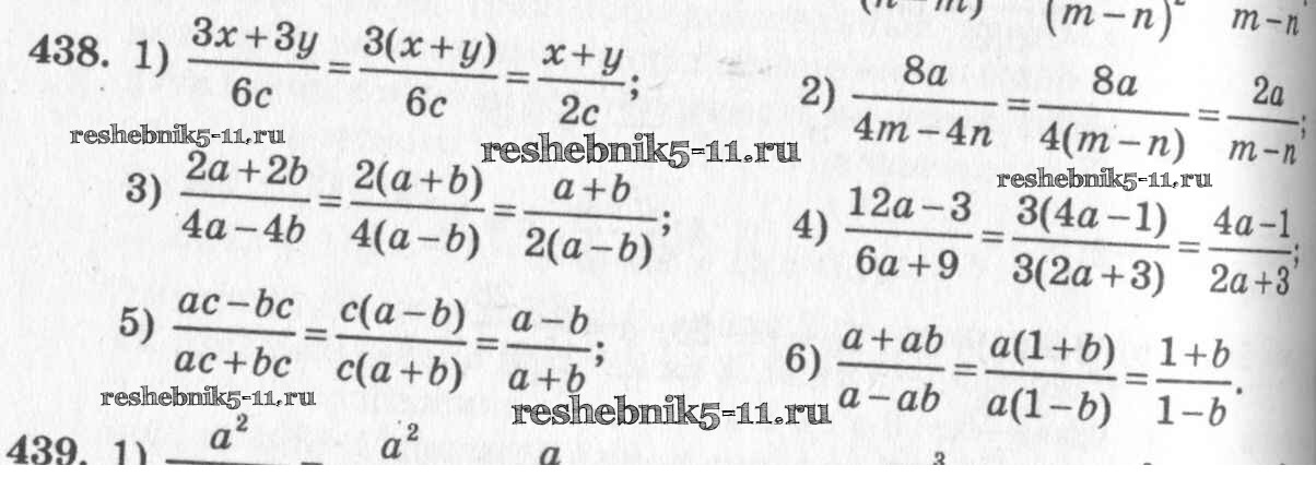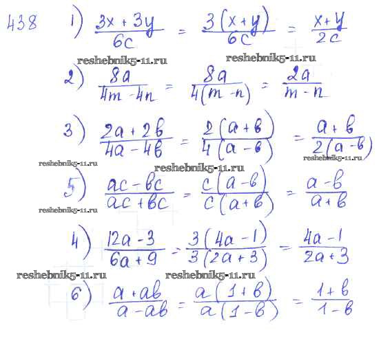 Готовая домашняя работа с ответами по Алгебре за 7 класс Колягин, Ткачёва, Федорова, Шабунин Учебник Просвещение 2014 ФГОС - §24. Алгебраическая дробь. Сокращение дробей 438