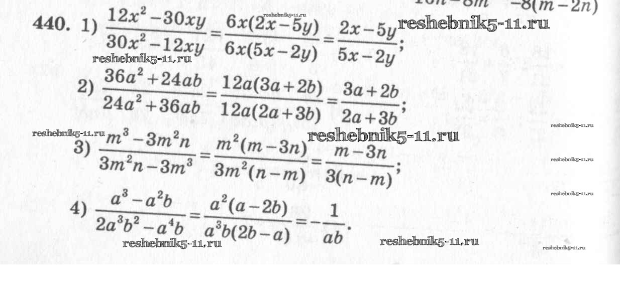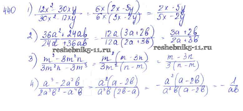 Готовая домашняя работа с ответами по Алгебре за 7 класс Колягин, Ткачёва, Федорова, Шабунин Учебник Просвещение 2014 ФГОС - §24. Алгебраическая дробь. Сокращение дробей 440