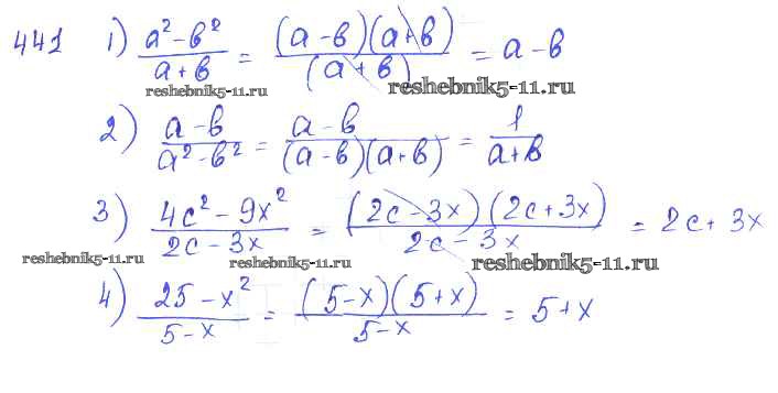 Готовая домашняя работа с ответами по Алгебре за 7 класс Колягин, Ткачёва, Федорова, Шабунин Учебник Просвещение 2014 ФГОС - §24. Алгебраическая дробь. Сокращение дробей 441